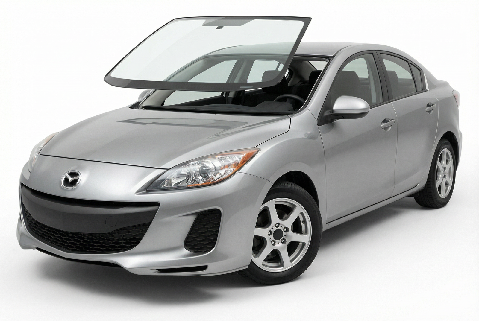 Parabrisas homologado para Mazda 3 2009-2014 compatible únicamente con sensor de lluvia. Repuesto equivalente que respeta la configuración original del fabricante. Para cotizar, indica el año del vehículo.